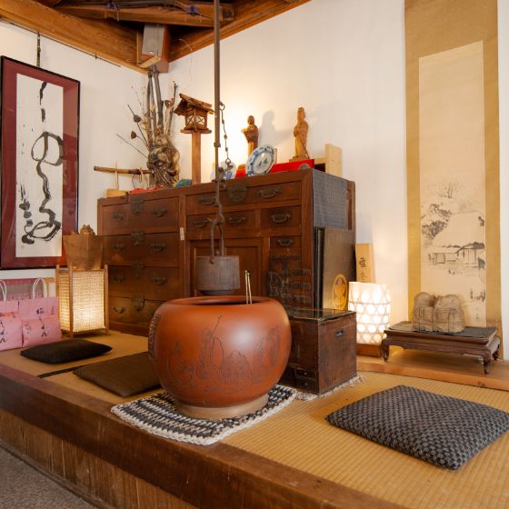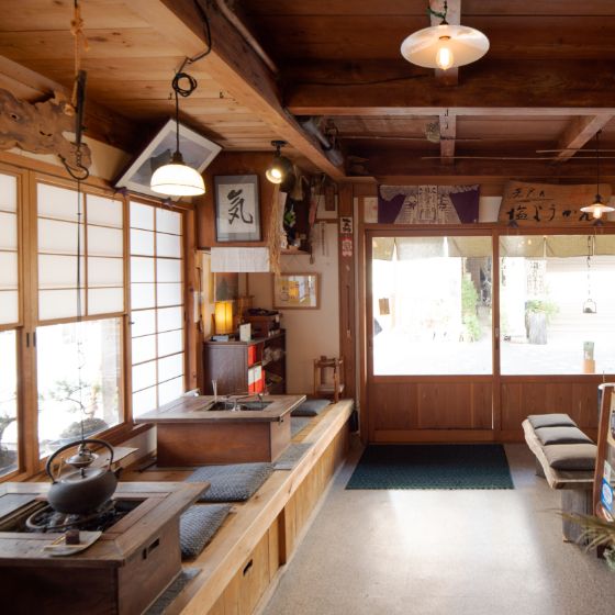 落ち着く和の空間は、骨董好きな2代目の賜物。また春には、店内で子育てするツバメたちに出会えます。